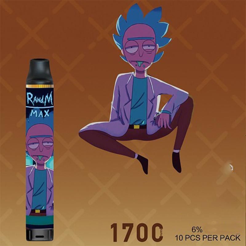Original Rick And Morty R And M Max Disposable Vape Airflow Control 1700 Puffs Pre Filled 6ml 600mah Battery 16 Colors Vapes Puff Bar Plus